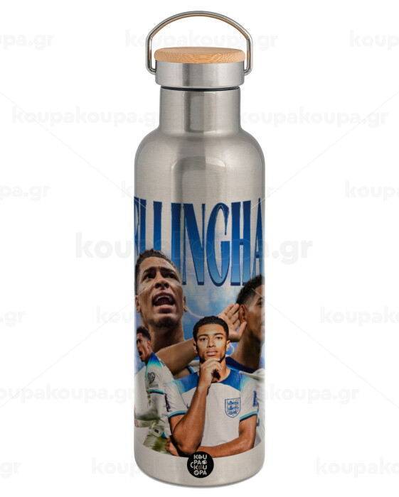 Jude Bellingham, Μεταλλικό παγούρι θερμός (Stainless steel) Ασημένιο με ξύλινο καπακι (bamboo), διπλού τοιχώματος, 750ml