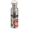 Olympiacos UEFA Europa Conference League Champion 2024, Μεταλλικό παγούρι θερμός (Stainless steel) Ασημένιο με ξύλινο καπακι (bamboo), διπλού τοιχώματος, 750ml