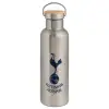 Tottenham Hotspur, Μεταλλικό παγούρι θερμός (Stainless steel) Ασημένιο με ξύλινο καπακι (bamboo), διπλού τοιχώματος, 750ml