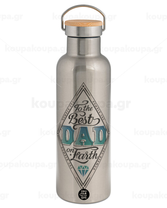 To the best DAD on earth, Μεταλλικό παγούρι θερμός (Stainless steel) Ασημένιο με ξύλινο καπακι (bamboo), διπλού τοιχώματος, 750ml