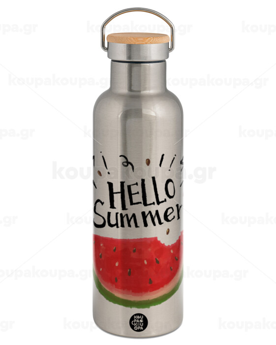 Summer Watermelon, Μεταλλικό παγούρι θερμός (Stainless steel) Ασημένιο με ξύλινο καπακι (bamboo), διπλού τοιχώματος, 750ml