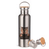 Cool cat, Μεταλλικό παγούρι θερμός (Stainless steel) Ασημένιο με ξύλινο καπακι (bamboo), διπλού τοιχώματος, 750ml