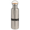 Fortnite landscape, Μεταλλικό παγούρι θερμός (Stainless steel) Ασημένιο με ξύλινο καπακι (bamboo), διπλού τοιχώματος, 750ml
