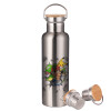 Pokemon brick, Μεταλλικό παγούρι θερμός (Stainless steel) Ασημένιο με ξύλινο καπακι (bamboo), διπλού τοιχώματος, 750ml