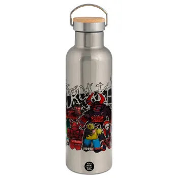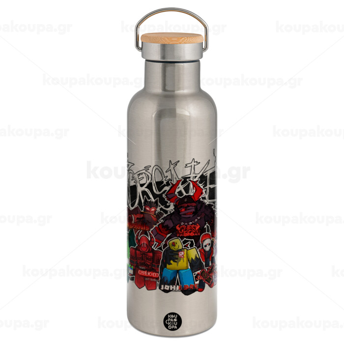 Roblox Forsaken, Μεταλλικό παγούρι θερμός (Stainless steel) Ασημένιο με ξύλινο καπακι (bamboo), διπλού τοιχώματος, 750ml