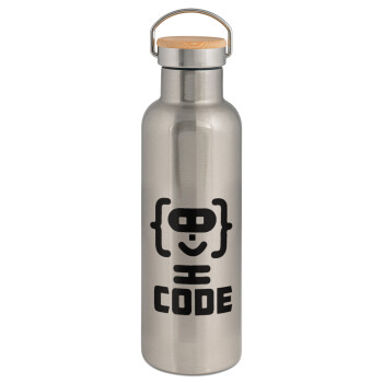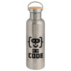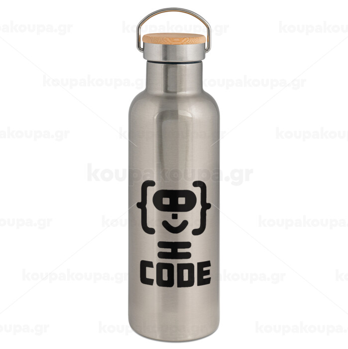 Code Heroes symbol, Μεταλλικό παγούρι θερμός (Stainless steel) Ασημένιο με ξύλινο καπακι (bamboo), διπλού τοιχώματος, 750ml