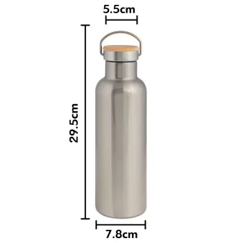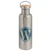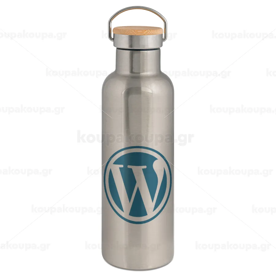 Wordpress, Μεταλλικό παγούρι θερμός (Stainless steel) Ασημένιο με ξύλινο καπακι (bamboo), διπλού τοιχώματος, 750ml