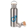 MALE, Μεταλλικό παγούρι θερμός (Stainless steel) Ασημένιο με ξύλινο καπακι (bamboo), διπλού τοιχώματος, 750ml
