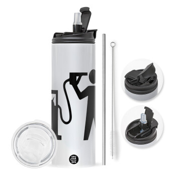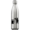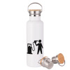 Fuel crisis, Μεταλλικό παγούρι θερμός (Stainless steel) Ασημένιο με ξύλινο καπακι (bamboo), διπλού τοιχώματος, 750ml
