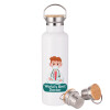 World's Best Doctor, Μεταλλικό παγούρι θερμός (Stainless steel) Λευκό με ξύλινο καπάκι (bamboo), διπλού τοιχώματος, 750ml