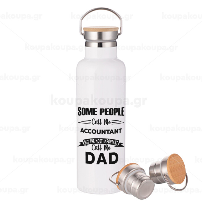 Some people call me accountant, Μεταλλικό παγούρι θερμός (Stainless steel) Λευκό με ξύλινο καπάκι (bamboo), διπλού τοιχώματος, 750ml