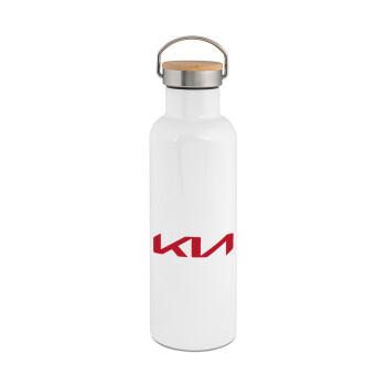HONDA, Μεταλλικό παγούρι θερμός (Stainless steel) Λευκό με ξύλινο καπάκι (bamboo), διπλού τοιχώματος, 750ml