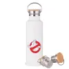 The Ghostbusters, Μεταλλικό παγούρι θερμός (Stainless steel) Λευκό με ξύλινο καπάκι (bamboo), διπλού τοιχώματος, 750ml