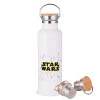 Star Wars, Μεταλλικό παγούρι θερμός (Stainless steel) Λευκό με ξύλινο καπάκι (bamboo), διπλού τοιχώματος, 750ml