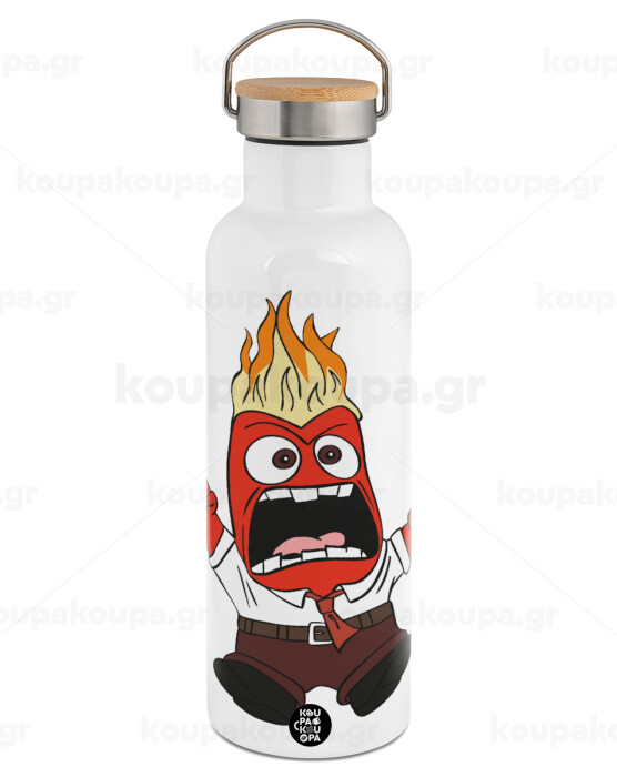Inside Out θυμός, Μεταλλικό παγούρι θερμός (Stainless steel) Λευκό με ξύλινο καπάκι (bamboo), διπλού τοιχώματος, 750ml