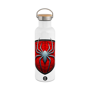 Lilo & Stitch Angel pink, Μεταλλικό παγούρι θερμός (Stainless steel) Λευκό με ξύλινο καπάκι (bamboo), διπλού τοιχώματος, 750ml