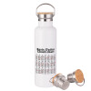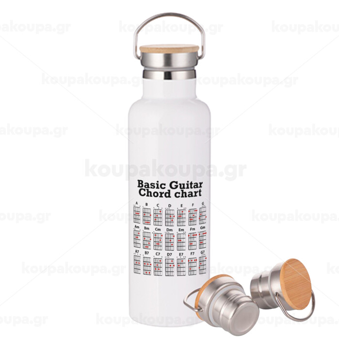 Συγχορδίες κιθάρας, Μεταλλικό παγούρι θερμός (Stainless steel) Λευκό με ξύλινο καπάκι (bamboo), διπλού τοιχώματος, 750ml