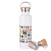 Friends, Μεταλλικό παγούρι θερμός (Stainless steel) Λευκό με ξύλινο καπάκι (bamboo), διπλού τοιχώματος, 750ml