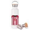 Ολυμπιακός εμφάνιση, Μεταλλικό παγούρι θερμός (Stainless steel) Λευκό με ξύλινο καπάκι (bamboo), διπλού τοιχώματος, 750ml