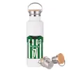 Παναθηναϊκός εμφάνιση, Μεταλλικό παγούρι θερμός (Stainless steel) Λευκό με ξύλινο καπάκι (bamboo), διπλού τοιχώματος, 750ml