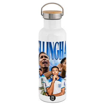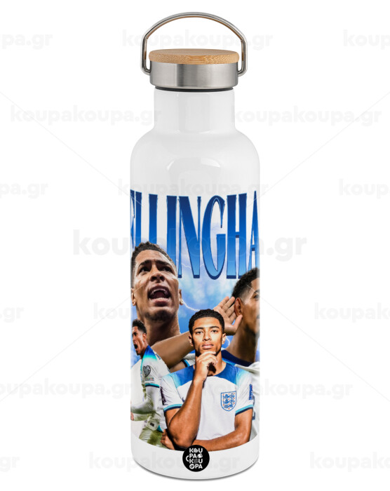 Jude Bellingham, Μεταλλικό παγούρι θερμός (Stainless steel) Λευκό με ξύλινο καπάκι (bamboo), διπλού τοιχώματος, 750ml