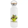Neymar JR, Μεταλλικό παγούρι θερμός (Stainless steel) Λευκό με ξύλινο καπάκι (bamboo), διπλού τοιχώματος, 750ml