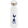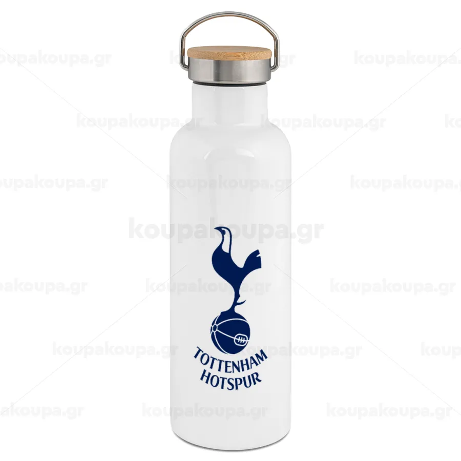 Tottenham Hotspur, Μεταλλικό παγούρι θερμός (Stainless steel) Λευκό με ξύλινο καπάκι (bamboo), διπλού τοιχώματος, 750ml