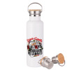 Dear Santa, sorry for all the F-bombs, Μεταλλικό παγούρι θερμός (Stainless steel) Λευκό με ξύλινο καπάκι (bamboo), διπλού τοιχώματος, 750ml