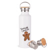 mr gingerbread, Μεταλλικό παγούρι θερμός (Stainless steel) Λευκό με ξύλινο καπάκι (bamboo), διπλού τοιχώματος, 750ml