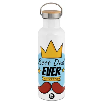 King, Best dad ever, Μεταλλικό παγούρι θερμός (Stainless steel) Λευκό με ξύλινο καπάκι (bamboo), διπλού τοιχώματος, 750ml