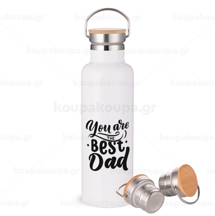 You are the best Dad, Μεταλλικό παγούρι θερμός (Stainless steel) Λευκό με ξύλινο καπάκι (bamboo), διπλού τοιχώματος, 750ml