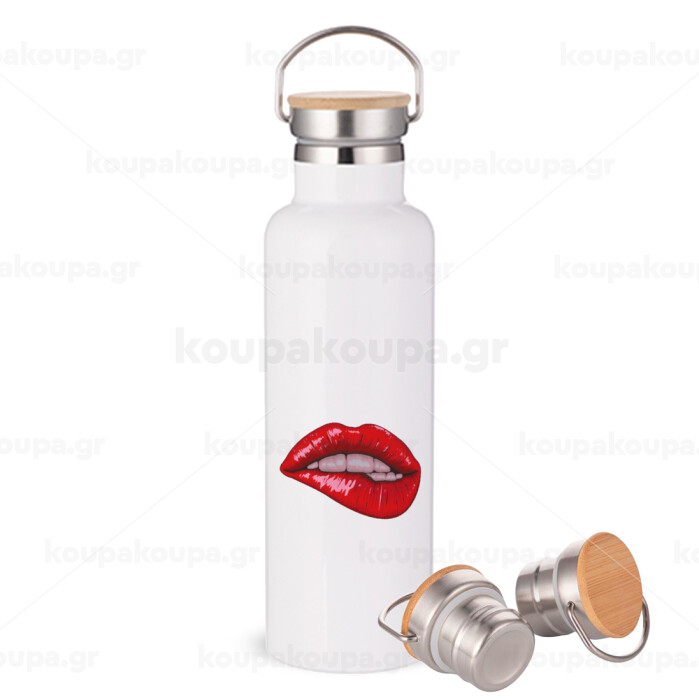 Lips, Μεταλλικό παγούρι θερμός (Stainless steel) Λευκό με ξύλινο καπάκι (bamboo), διπλού τοιχώματος, 750ml