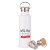 Will you be my Valentine???, Μεταλλικό παγούρι θερμός (Stainless steel) Λευκό με ξύλινο καπάκι (bamboo), διπλού τοιχώματος, 750ml