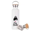 The Bride red kiss, Μεταλλικό παγούρι θερμός (Stainless steel) Λευκό με ξύλινο καπάκι (bamboo), διπλού τοιχώματος, 750ml