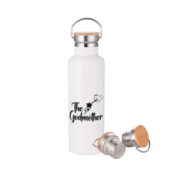 I Love ΝΟΝΟΣ, Μεταλλικό παγούρι θερμός (Stainless steel) Λευκό με ξύλινο καπάκι (bamboo), διπλού τοιχώματος, 750ml