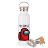 Among US, you seem sus, Μεταλλικό παγούρι θερμός (Stainless steel) Λευκό με ξύλινο καπάκι (bamboo), διπλού τοιχώματος, 750ml