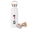 Ken sent me, Leisure Suit Larry, Μεταλλικό παγούρι θερμός (Stainless steel) Λευκό με ξύλινο καπάκι (bamboo), διπλού τοιχώματος, 750ml