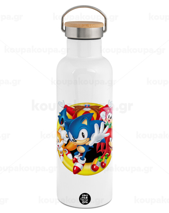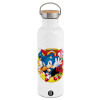 Sonic and friends, Μεταλλικό παγούρι θερμός (Stainless steel) Λευκό με ξύλινο καπάκι (bamboo), διπλού τοιχώματος, 750ml