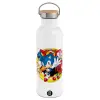Sonic and friends, Μεταλλικό παγούρι θερμός (Stainless steel) Λευκό με ξύλινο καπάκι (bamboo), διπλού τοιχώματος, 750ml