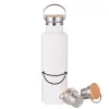 Χαμογέλα, Μεταλλικό παγούρι θερμός (Stainless steel) Λευκό με ξύλινο καπάκι (bamboo), διπλού τοιχώματος, 750ml