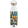 Camp Life, Μεταλλικό παγούρι θερμός (Stainless steel) Λευκό με ξύλινο καπάκι (bamboo), διπλού τοιχώματος, 750ml
