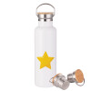 Star, Μεταλλικό παγούρι θερμός (Stainless steel) Λευκό με ξύλινο καπάκι (bamboo), διπλού τοιχώματος, 750ml