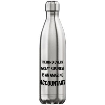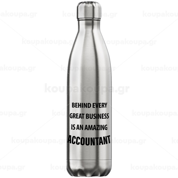 Behind every great business, Μεταλλικό παγούρι θερμός Inox (Stainless steel), διπλού τοιχώματος, 750ml