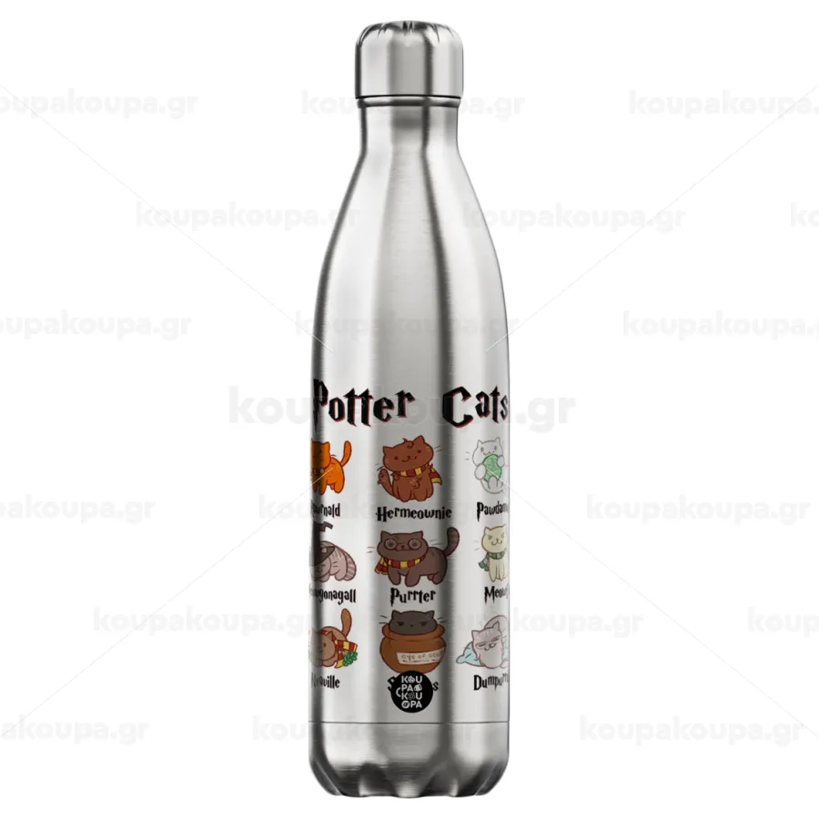 Potter Cats, Μεταλλικό παγούρι θερμός Inox (Stainless steel), διπλού τοιχώματος, 750ml