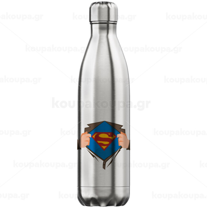 Superman hands, Μεταλλικό παγούρι θερμός Inox (Stainless steel), διπλού τοιχώματος, 750ml