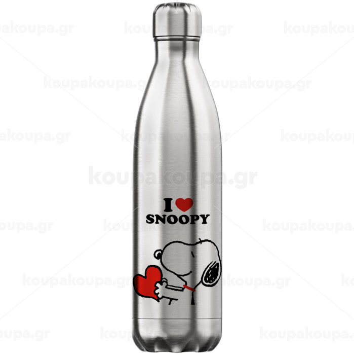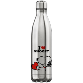 I LOVE SNOOPY, Μεταλλικό παγούρι θερμός Inox (Stainless steel), διπλού τοιχώματος, 750ml