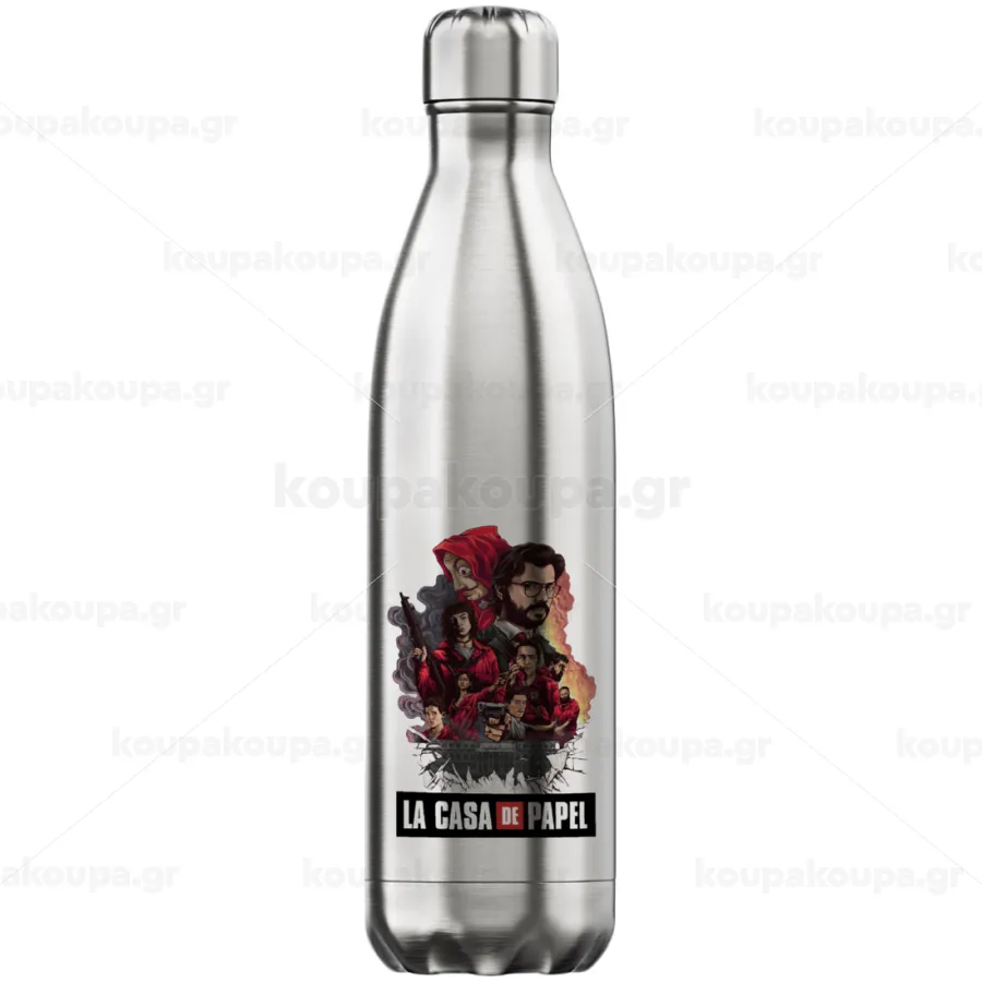 La casa de papel drawing cover, Μεταλλικό παγούρι θερμός Inox (Stainless steel), διπλού τοιχώματος, 750ml