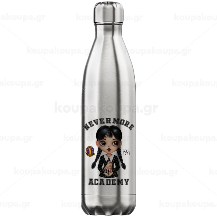 Wednesday Adams, nevermore, Μεταλλικό παγούρι θερμός Inox (Stainless steel), διπλού τοιχώματος, 750ml