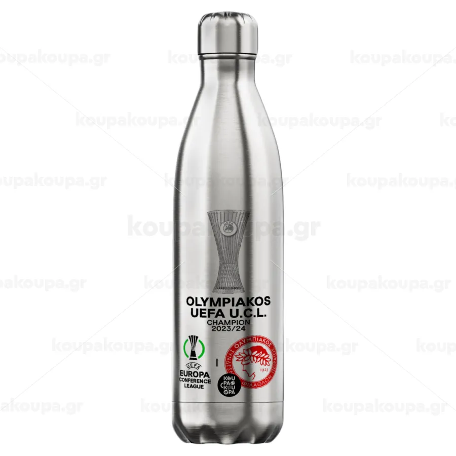 Ολυμπιακός νικητής UEFA Europa Conference League Champion 2023/24, Μεταλλικό παγούρι θερμός Inox (Stainless steel), διπλού τοιχώματος, 750ml