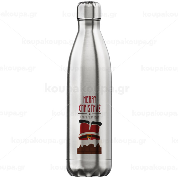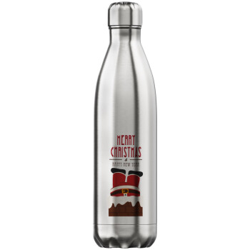 Merry christmas chimney, Μεταλλικό παγούρι θερμός Inox (Stainless steel), διπλού τοιχώματος, 750ml